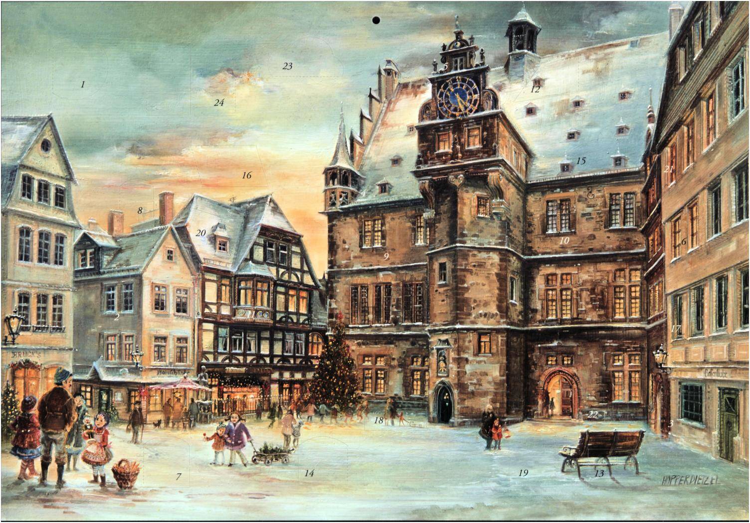 Adventskalender Weihnachten in Marburg. Unser Adventskalender zeigt den Marburger Marktplatz mit dem Rathaus in der Marburger Oberstadt.