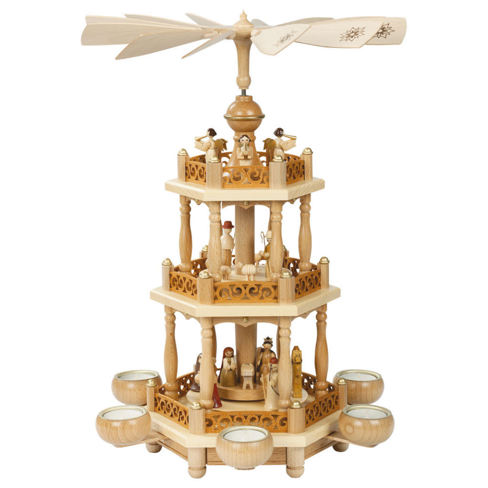Weihnachtspyramide Christi Geburt 2-stöckig. natur